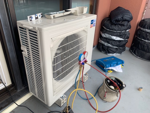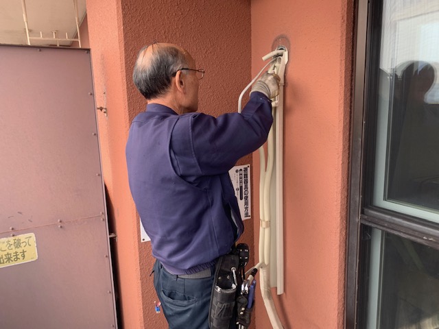 はい、無事外へのホース類や室外機のガスのチェックなどを済ませ。