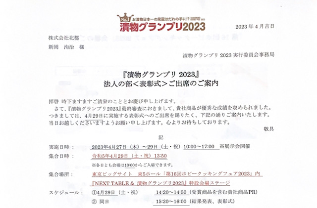 先月「漬物グランプリ2023」へ最終審査へ