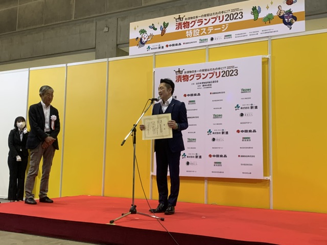 最後は受賞者並びに全国漬物組合連合会長や総評、小説家、関係者で