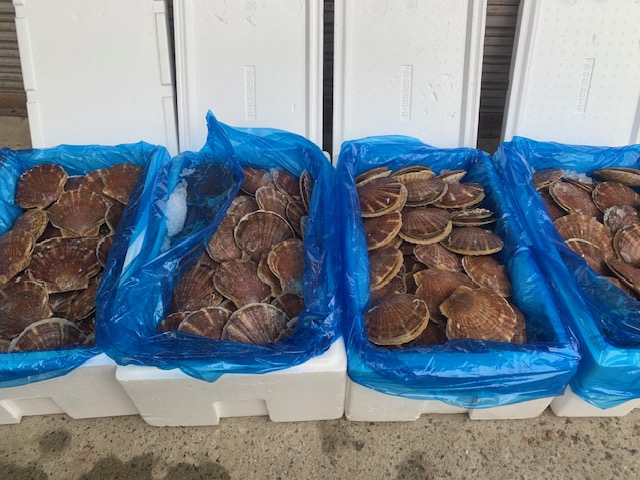 連休にさしかかり「活ホタテ」の在庫を切らせないので