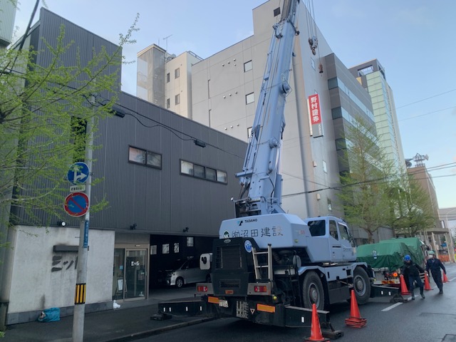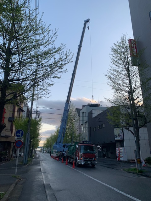 まずは材料の荷上げを早朝5時に行わせていただきました!