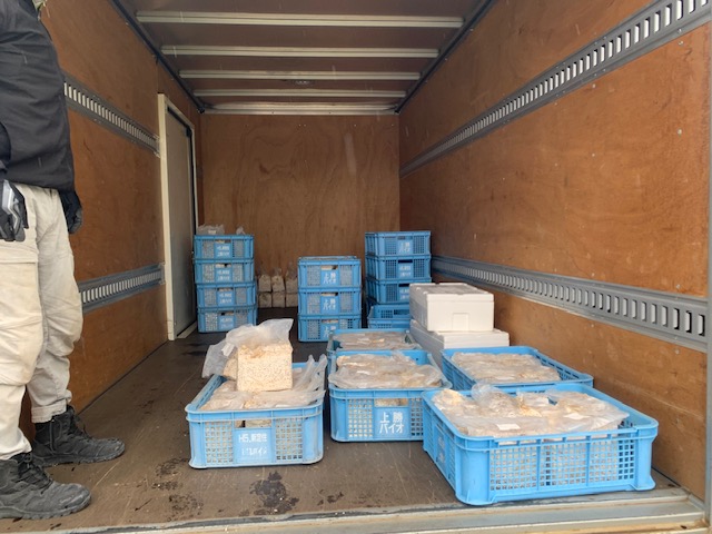 新着情報 NEWS 第2回きくらげ引き取り~\(゜ロ\)(/ロ゜)/ 2023.05.10 皆さんこんにちは(。◕ˇдˇ◕。)/ 先月に引き続き、 きくらげの菌床を引き取りに行きます♪ まずはトラックを準備しなくては(゜∀゜) そして積み込んでいきます!! その数なんと前回と一緒の、500個!!! なんとか積み込み終了し、 先月同様ビニールハウスの中もチラ見(゜∀゜) 1万菌床は圧巻Σ( ̄□ ̄|||)!! 定期時間の散水が始まったので避難…笑 そして本社へ戻り菌床を下す事20分 合計1000個Σ( ̄□ ̄|||) めっちゃあるーーー笑 ではでは近日、菌床を置く台を作っていきます(・ω・)ノ 一覧に戻る