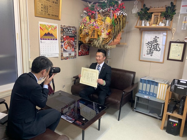 社長、賞状の位置や光加減を調整してーーの♪