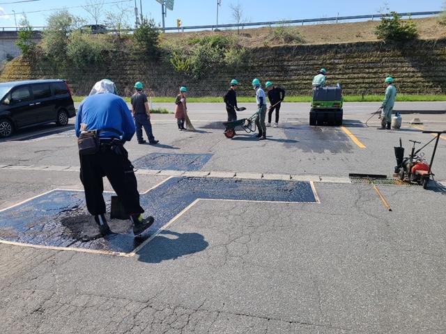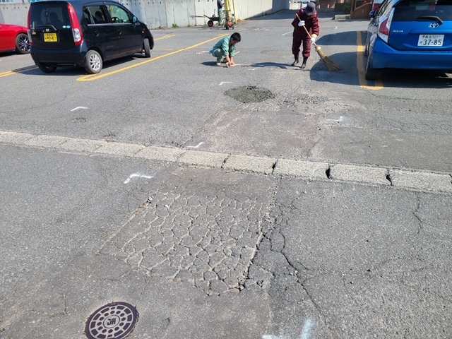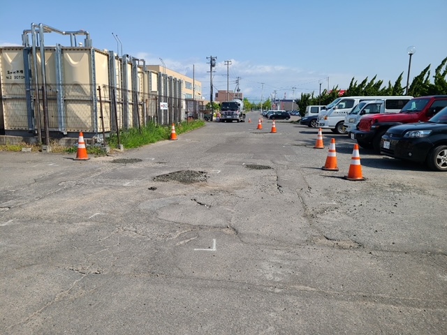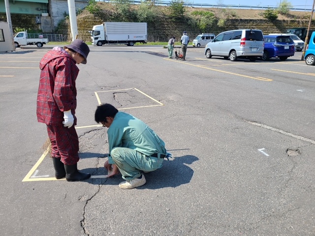 昨年もこちらの駐車場内補修作業、請け負わせていただきました!