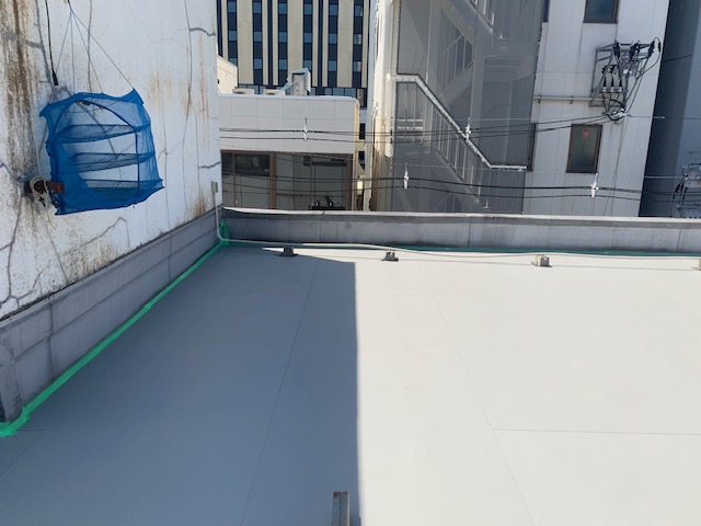 平場シート貼付けを行いジョイント溶着の作業行いました_(._.)_
