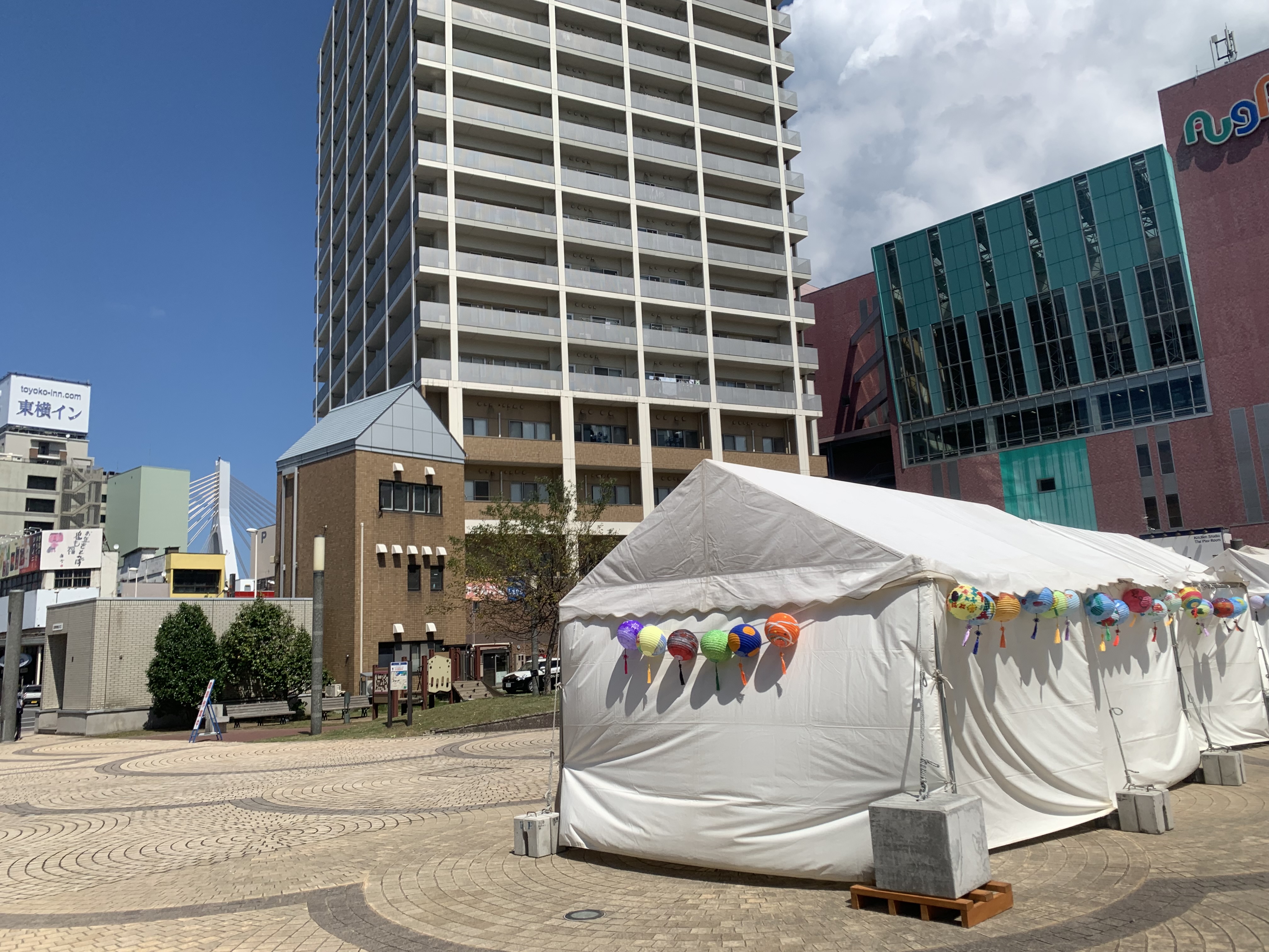 青森市駅前広場にて