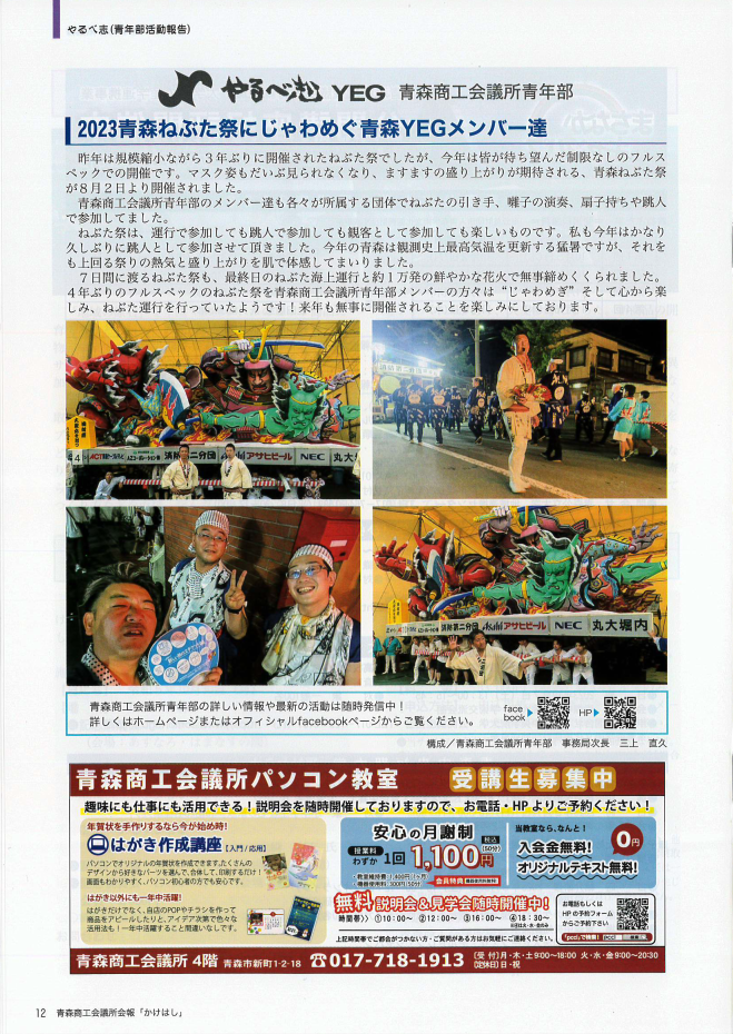 新着情報 NEWS かけはし9月号♫(^o^)/ 2023.09.20 皆さんこんにちは(。-`ω-) もう9月中旬ではございますが 9月号の青織商工会議所会報「かけはし」 8月に行われた、ねぶた祭りの様子が載ってらっしゃいました(=゜ω゜)ノ 当社長のアサヒビール第二消防二分団の扇子持ちの際の様子 私もこっそりと隣写ってます(●´ω`●) その他に、 当社も参加している「青森の宝物」のセミナーの様子も掲載されております(^o^)/ こちらも私チラッと写っております♪ ではでは10月号もお楽しみくださいませ☆彡 一覧に戻る