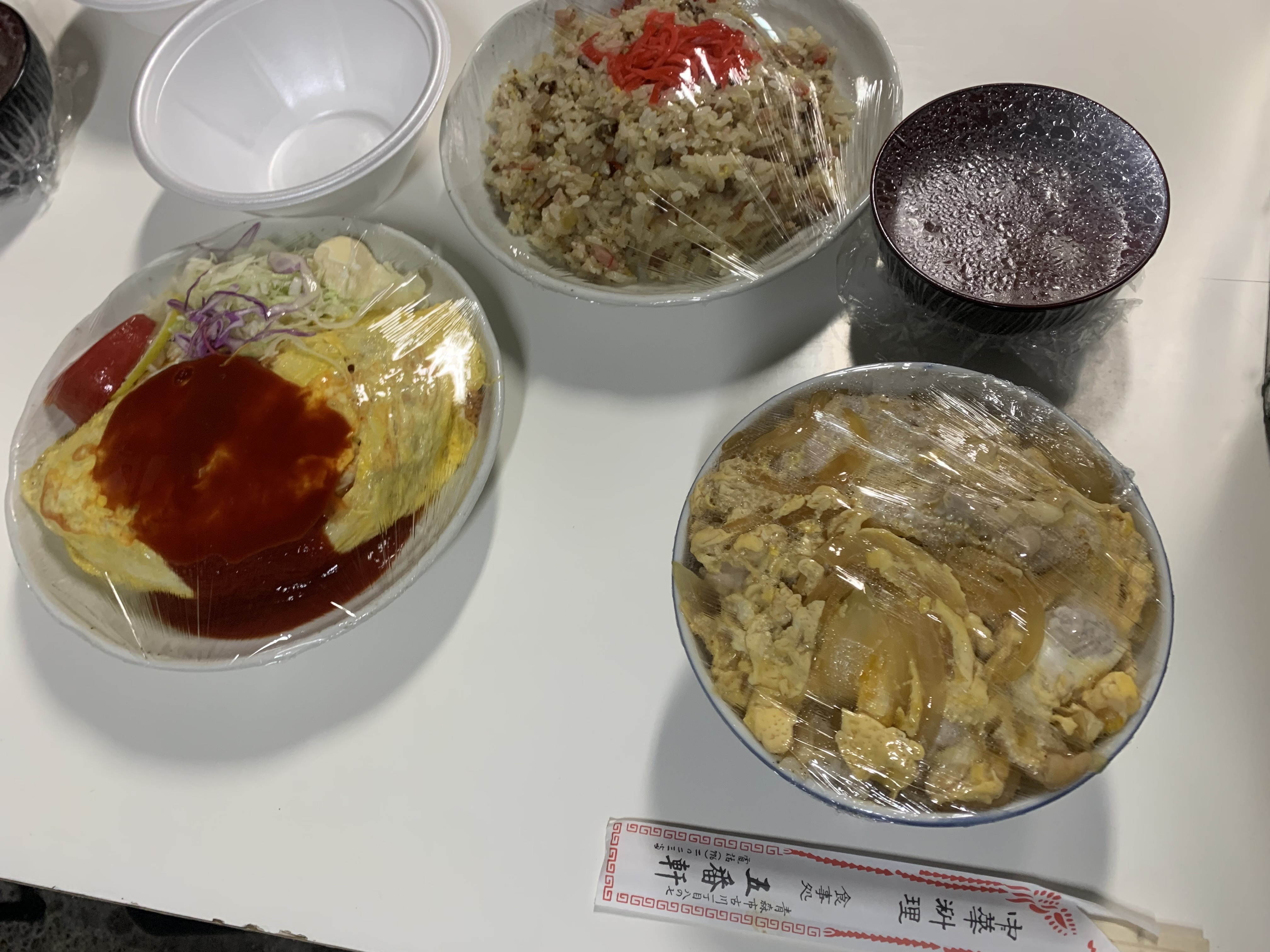 「チャーハン」「オムライス」「親子丼」「みそ汁3つ」頼んだんですが