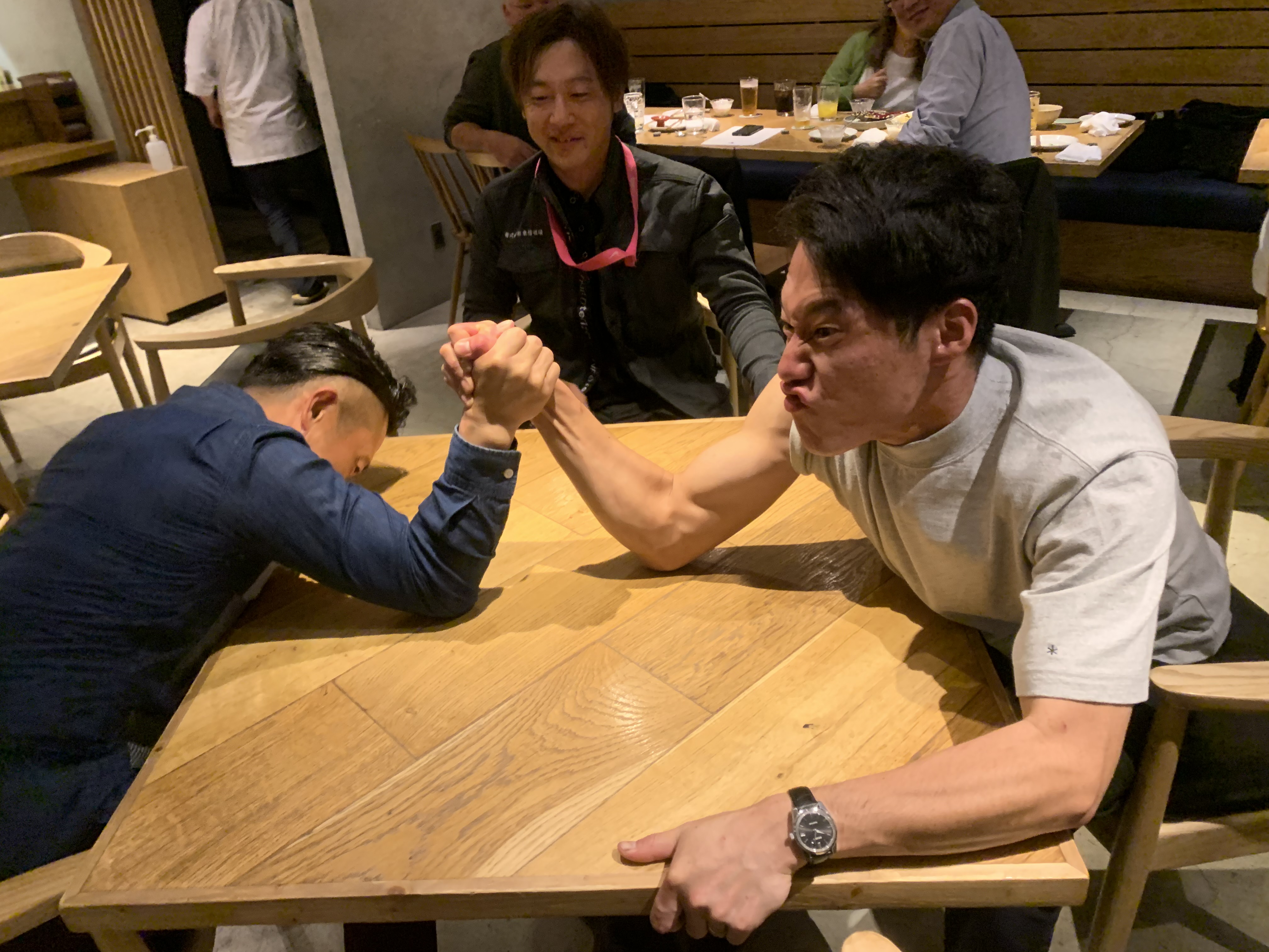 社長や女性同士の腕相撲もはじまって盛り上がってました(笑)