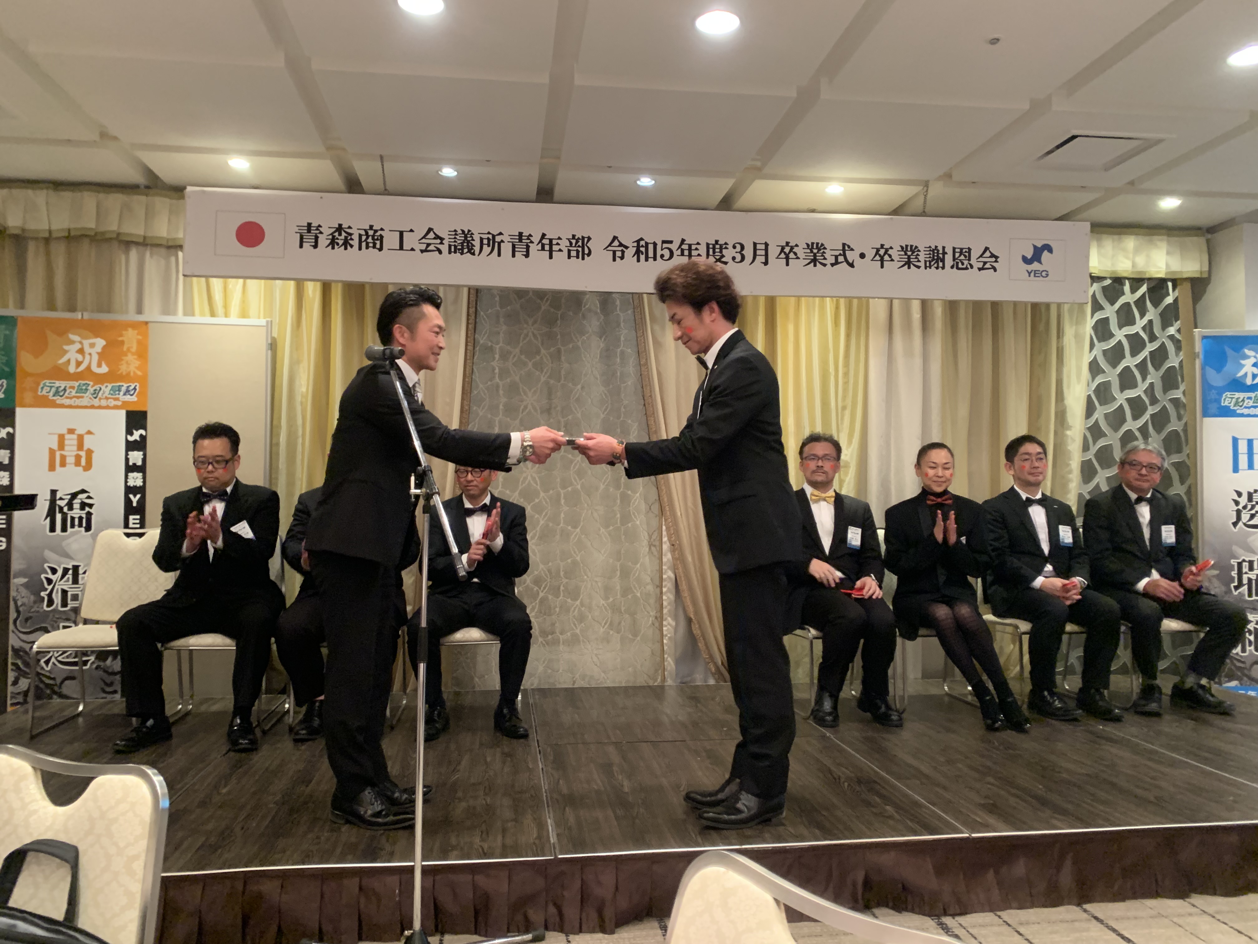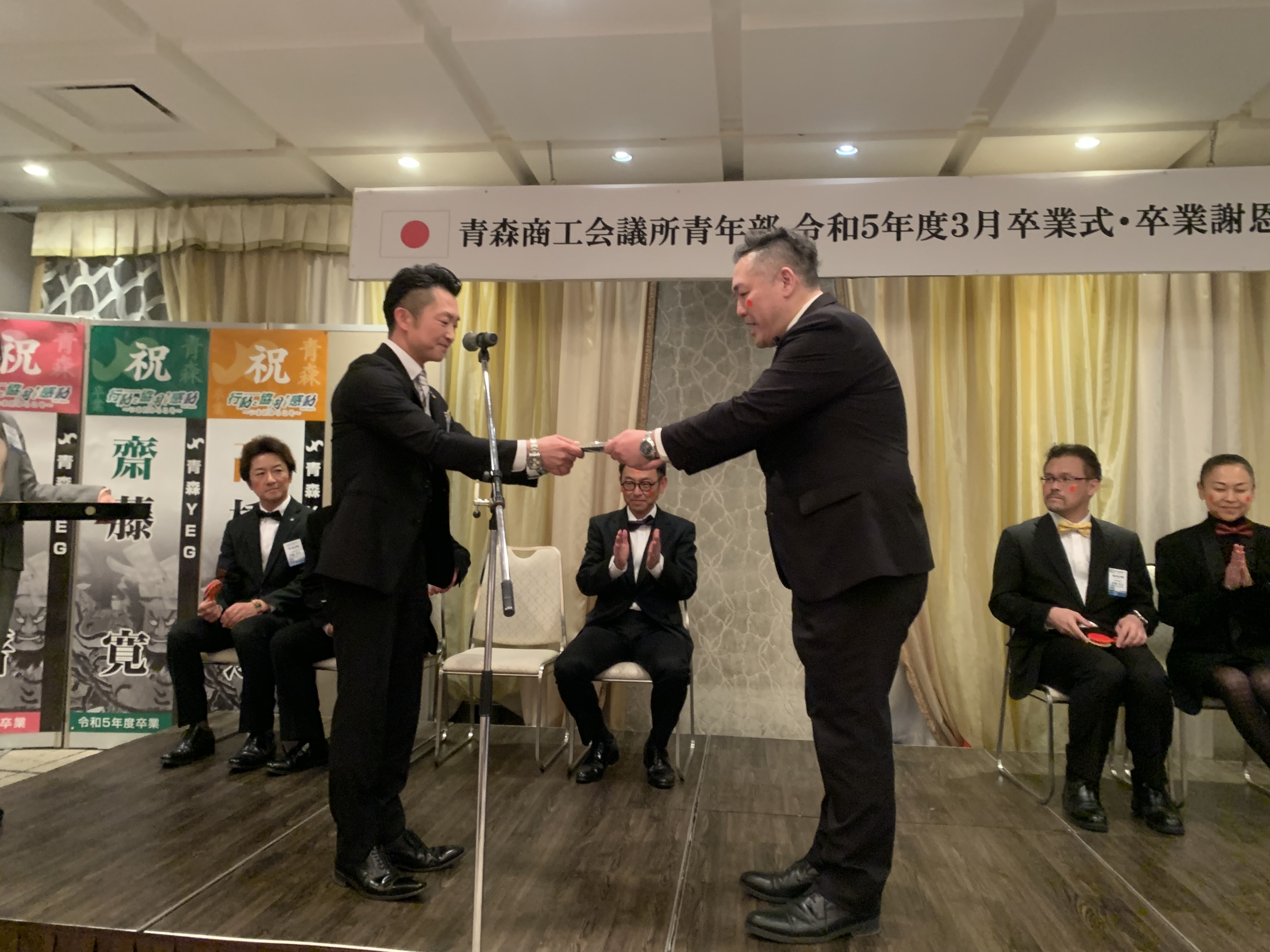 新着情報 NEWS 3月通常総会・卒業謝恩会へ(=゜ω゜)ノ 2024.03.20 皆さんこんにちは(@^^)/~~~ 19日(火)は18:30~ホテル青森で ・青森商工会議所青年部令和5年度3月通常総会 ・卒業式、卒業謝恩会 が開催されましたヽ(^。^)ノ 会長である当社長からの「会長挨拶」から始まり 議案や収支予算、委員会の年間スケージュールなどを確認して おおよそ30分程で閉会し場所を隣の会場へ移しましょう(´_ゝ`) そしてメインとなる「卒業式」の準備~☆彡 いやーーーーーメッチャ本格的ですな~☆彡 そして卒業生が入場し(日本昔話の主題歌)ほっぺにみんな 赤いシールっぽいのつけてます…笑 そして、送辞の後に各卒業生に記念品を贈呈し記念撮影(´;ω;`) 建設会社の伊藤社長や リフォーム会社の瓜田取締役、 私と同じ委員会でとてもお世話になりました( ノД`)シクシク… 存在感、また経験豊富で発言力がありとてもお手本になる勉強になる先輩でした(。´・ω・) という事で… 乾杯になるのですが 続きはまた明日( *´艸`) 一覧に戻る