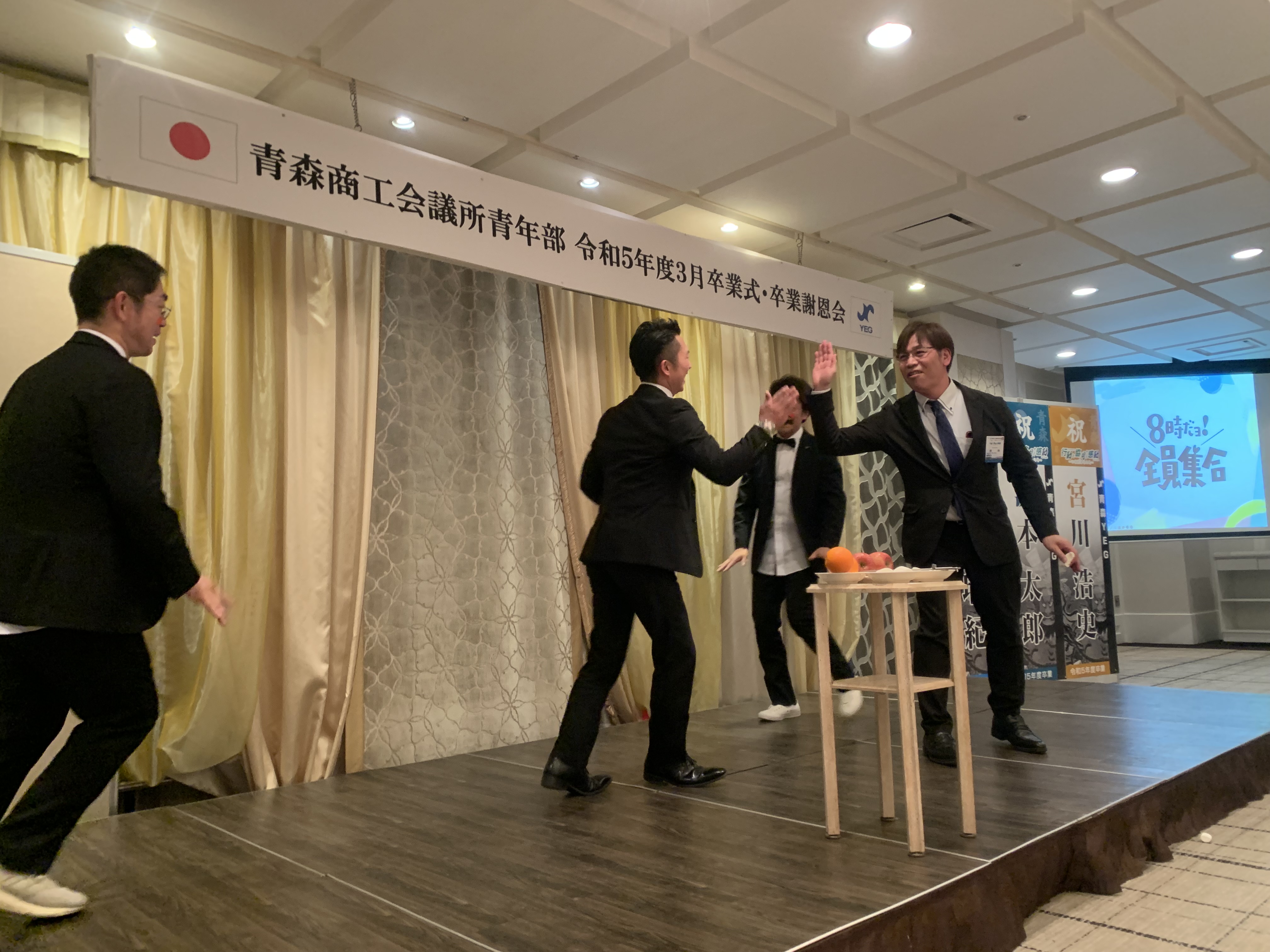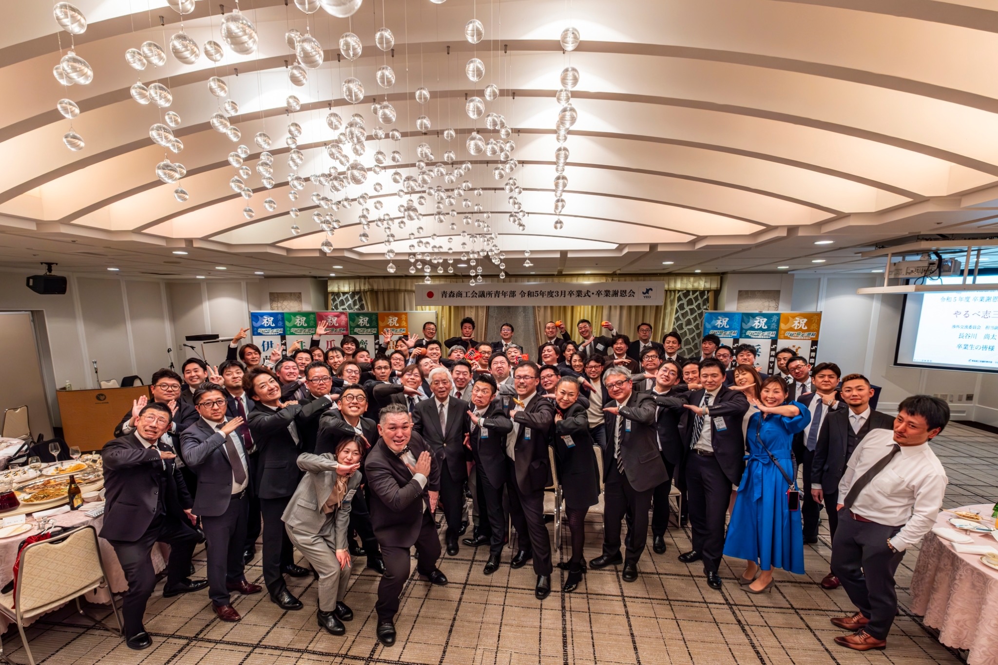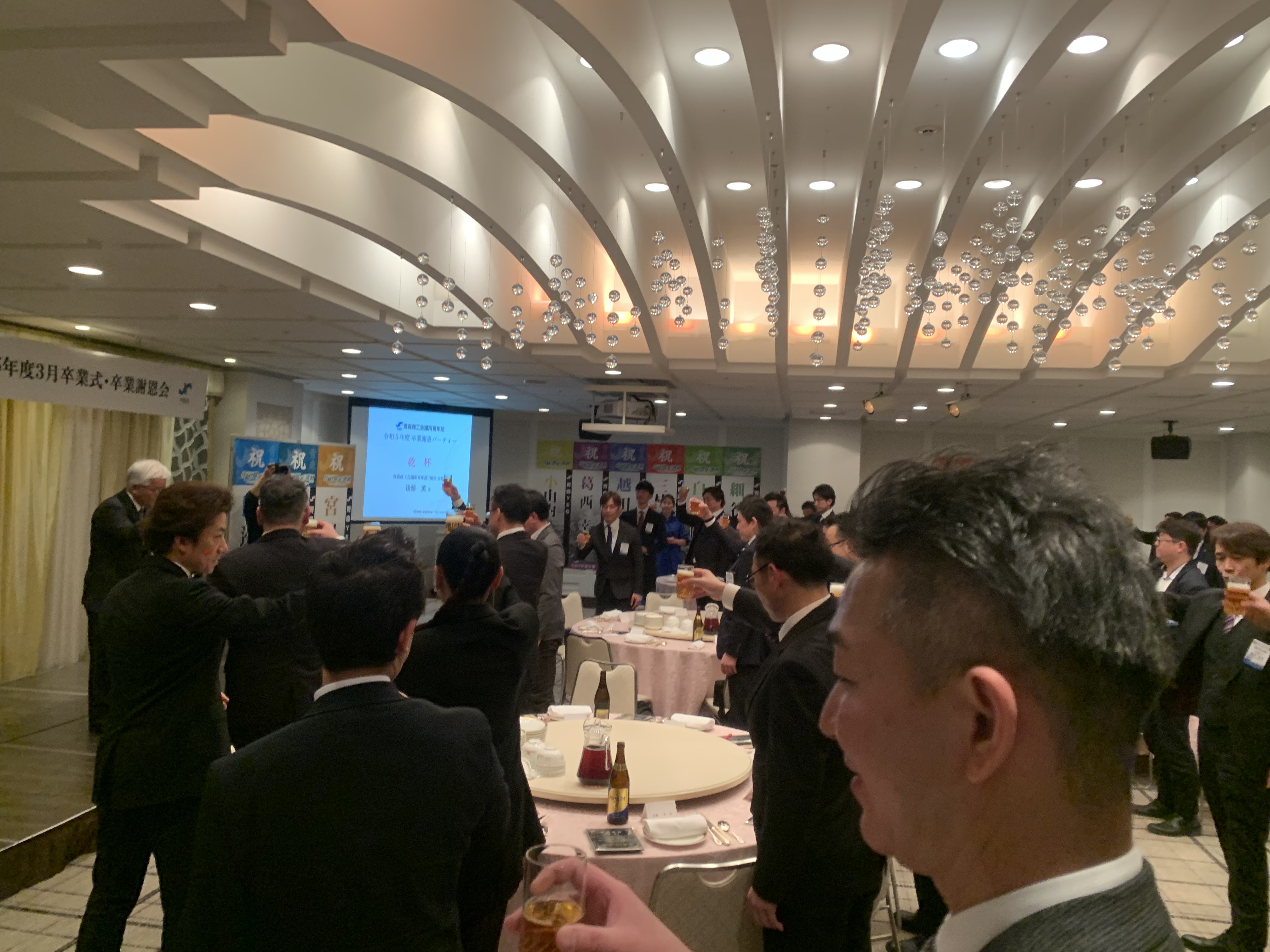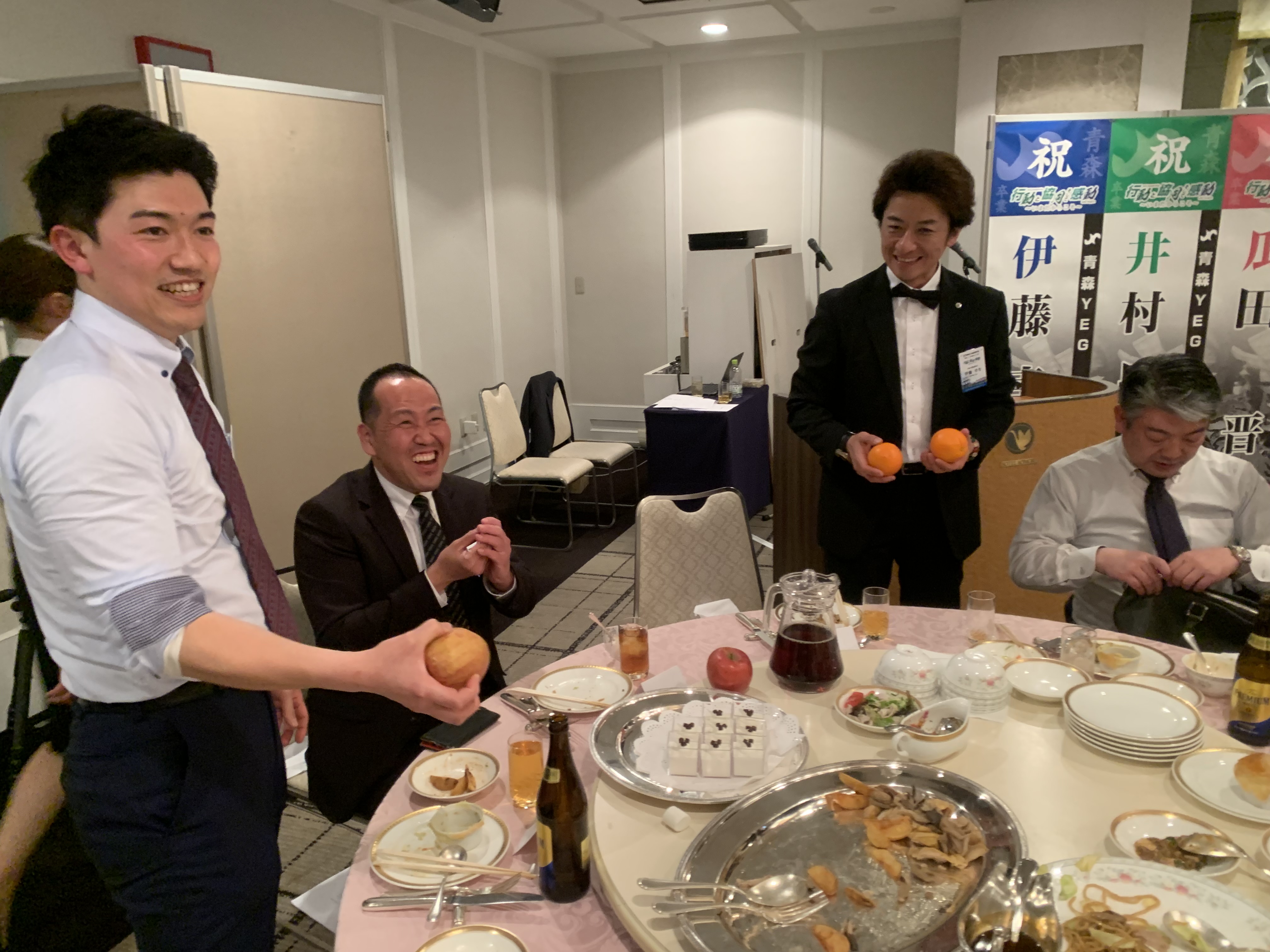 新着情報 NEWS では、かんぱーーーーーーい\(゜ロ\)(/ロ゜)/ 2024.03.22 「かんぱーーーーーーーい☆彡」 という事で 昨日の続き… 美味しい料理を食べてまもなく 恒例の卒業生からの余興が… ひげダンスのノリノリの曲でりんごやみかんを投げて棒に刺す 「8時だよ全員集合!!!」 がスター――ト―――――!! からの、現役会員の人を登壇させて 「生麦生米生卵」等々、沢山の早口言葉ゲームもやっております♪ メッチャ盛り上がりましたねーー( *´艸`) りんごをつぶそうとする筋肉ムキムキ田辺君…笑 宴もたけなわではございますが お時間もせまり 記念撮影といきましょーーーー(/・ω・)/ 集合しようとしている最中の写真 みんないい感じにほろ酔い(笑) そして最後に卒業生を送り届けて終了となりましたー(●´ω`●) 一覧に戻る