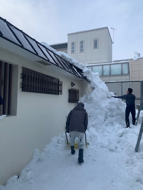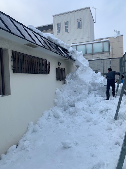 屋根雪が落ちて地面についてるじゃ、