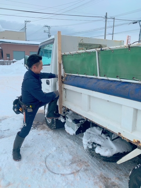 除雪するにしても、まずはトラックの加工をします(=゜ω゜)ノ